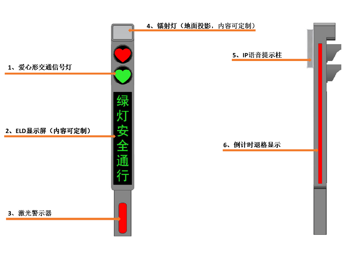 采用長壽命、高亮度LED,區別于常見人行信號燈形式,用愛心圖案讓交通管理更加人性化;