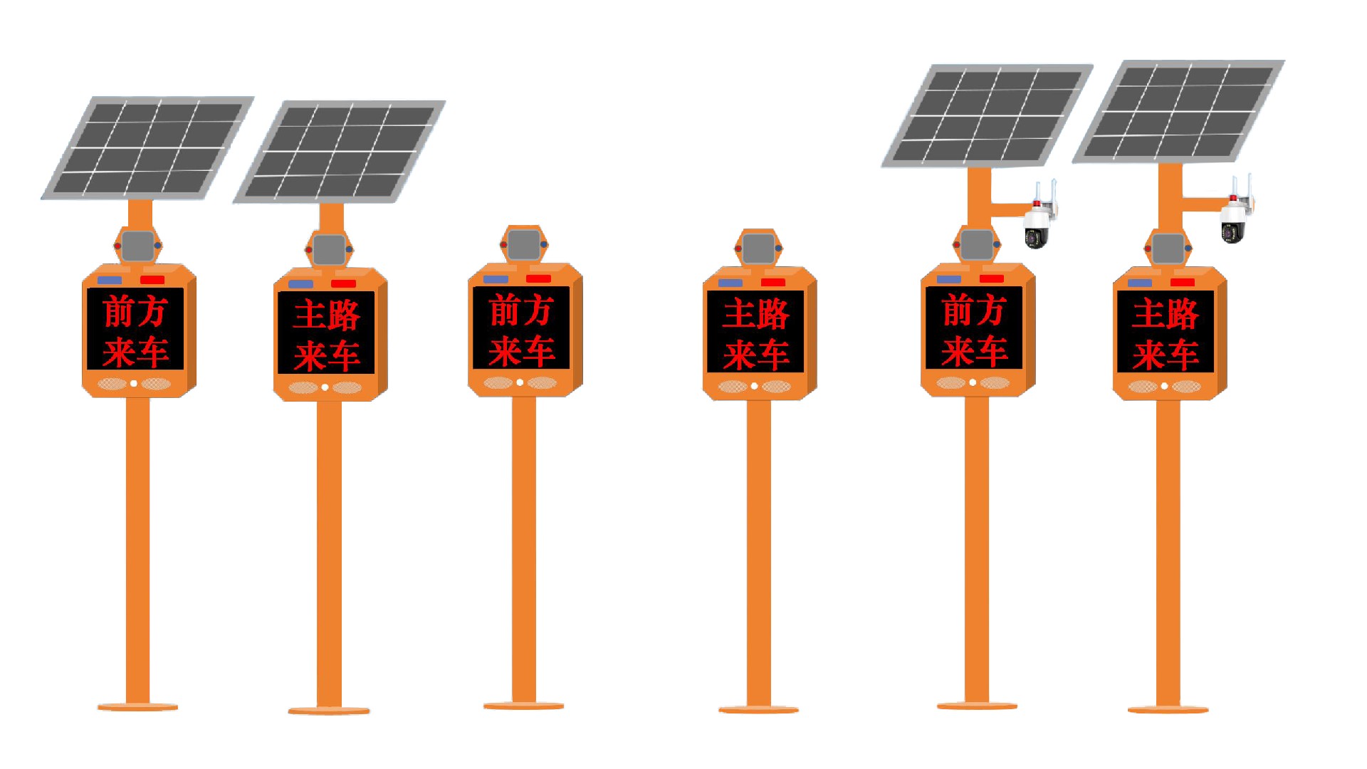 在道路交通復雜的地形、路口、彎道、陡坡等路段,通過雷達實時監測對向或主路來車、支路行人和非機動車。當雷達檢測到來車時,給與對向車道或支路來車、行人以及非機動車發出聲光預警,提醒注意主路會車、減速慢行,同時聯動爆閃燈提醒,屏幕文字顯示提醒。